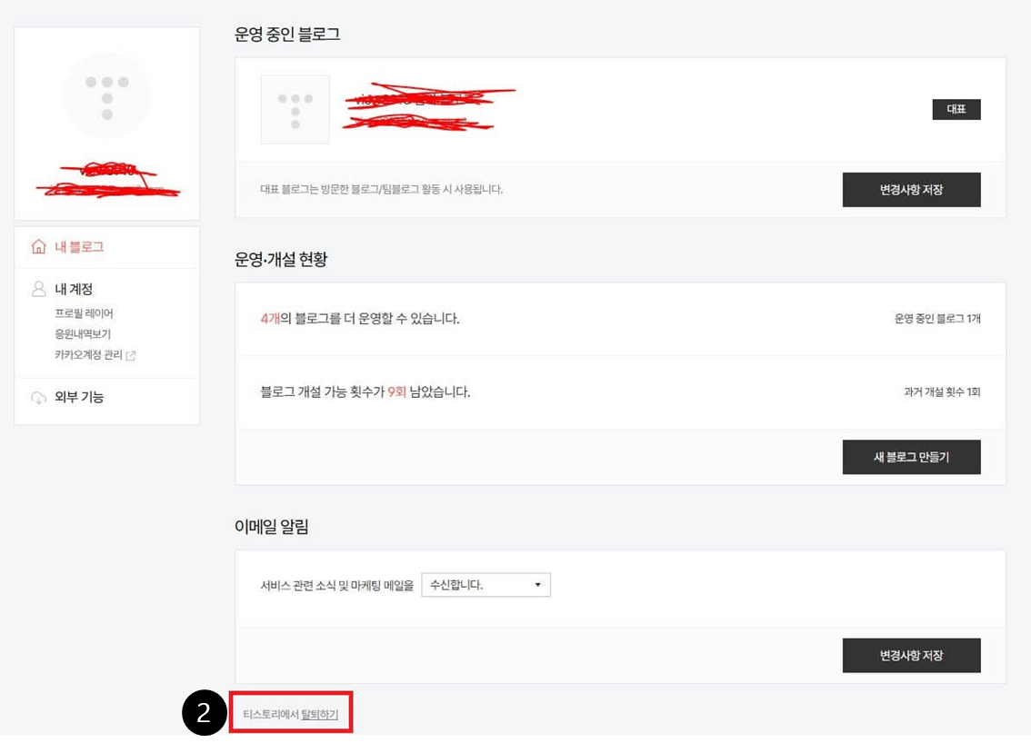 1단계 - 티스토리 서비스(계정) 탈퇴하기